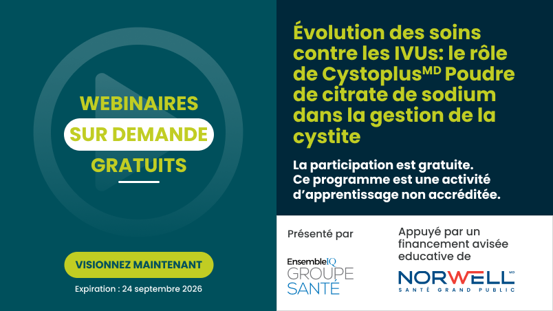 Ajoutez la fiche d’information sur le produit intitulée « Recommandations pour soulager la sensation de brûlure et de picotement associée à la cystite chez les femmes » à vos ressources de référence pour le traitement de la cystite. Elle fournit des renseignements concis sur CystoplusMD afin de vous aider à soutenir vos patientes dans la gestion de leurs symptômes.